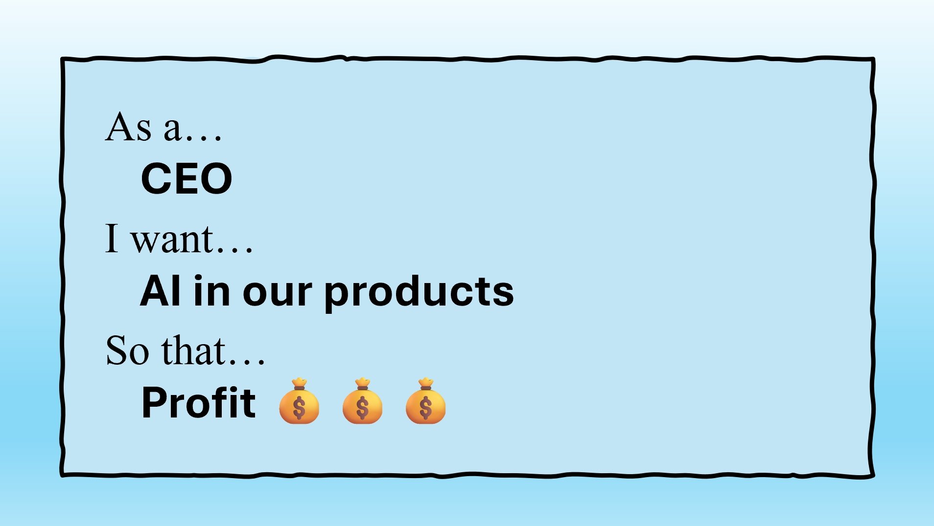 今までに、あなたやあなたの知り合いは、ビジネスリーダーが「私たちは製品にAIを追加する必要がある」と言った話を少なくとも1つは持っているはずだ。「AI」を「DB」に置き換えて、その要求にどう答えるか考えてみよう。あなたは振り返って、そのビジネス・リーダーにどのような種類のデータベースが欲しいか尋ねるだろうか?それはあまりうまくいかないと思う。