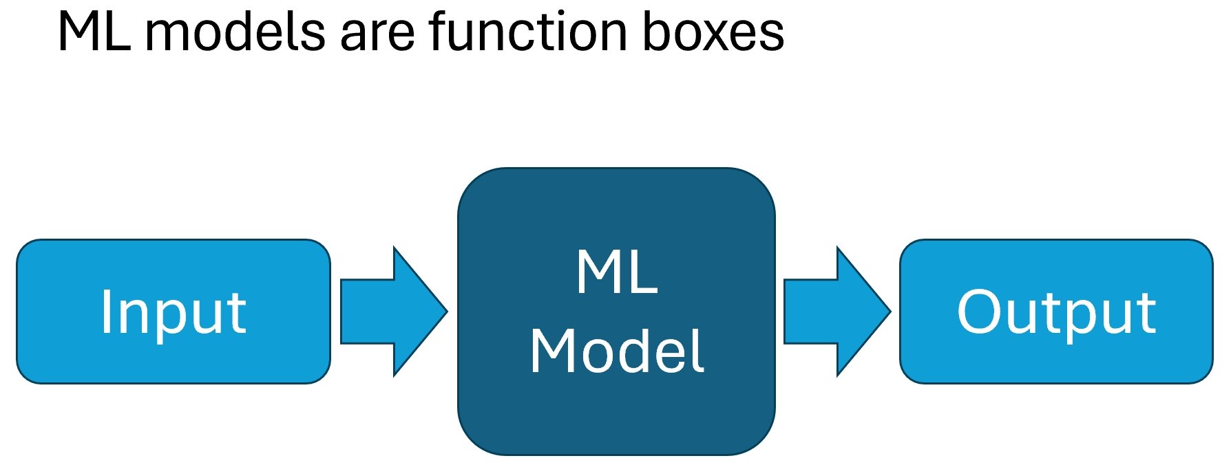 いずれの場合も、MLモデルは単純な関数ボックスである。入力を与え、出力を返す。それだけだ。入力と出力は、平方根関数と比べると非常に複雑になることもあるが、関数ボックスのアナロジーはすべてのタイプのMLモデルに有効である。画像認識モデル、感情分析モデル、売上予測モデル、そしてGenAIの話に戻ると、大規模言語モデルも同様だ。
