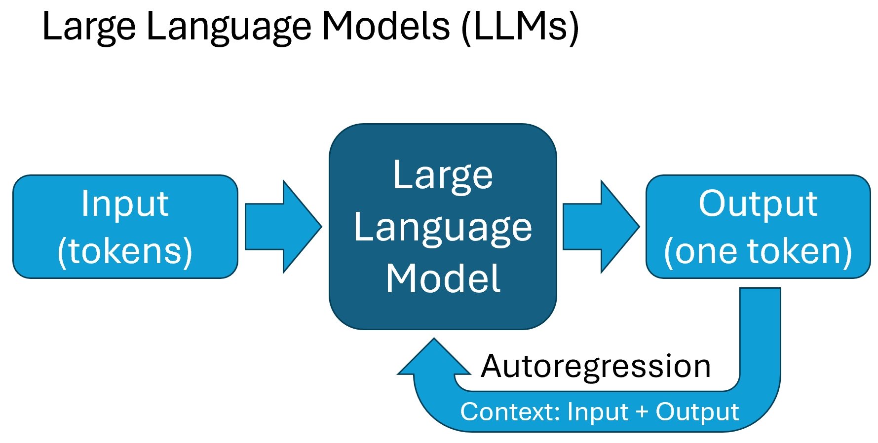 私たちの出力はトークンであり、一連のトークンではなく、単一のトークンだ。LLMは単なる予測テキストエンジンだ。しかし、単一のトークンや単語を予測することはあまり意味がない。次に、その単一のトークンをモデルにフィードバックし、その前に来たものすべてを予測し、次のトークンを予測する。これは、モデルが終了したというトークンを返すまで繰り返される。このプロセスは自己回帰として知られている。